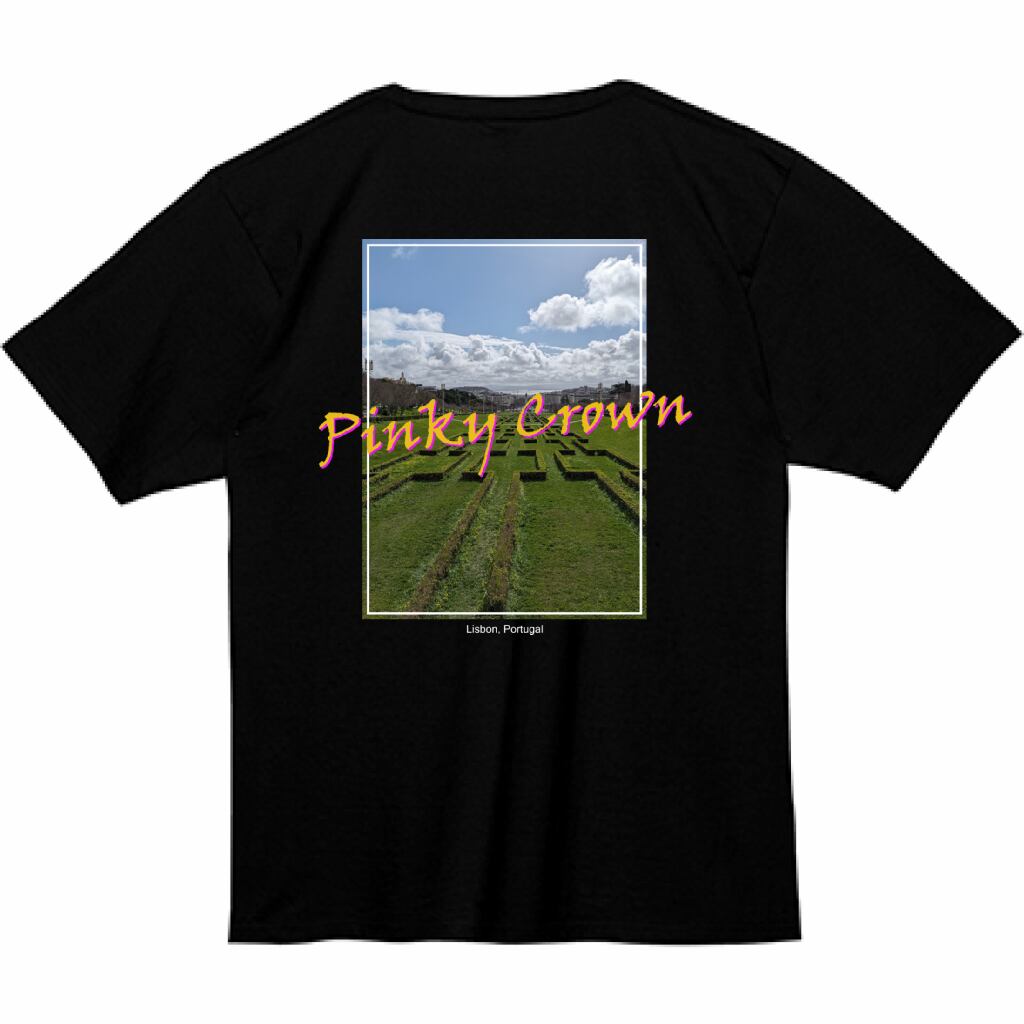 「Royal Park Vibes」は、リスボンのエドゥアルド7世公園の風景をモチーフに、広がる青空と緑の美しい景色をプリント。都会の中でも自然を感じる、心を落ち着かせるデザインです。PINKY CROWNらしい心温まるピンク色がアクセントとなり、シンプルで洗練されたデザインがカジュアルにもエレガントにもマッチします。日常にちょっとした特別な瞬間を加える一枚です。